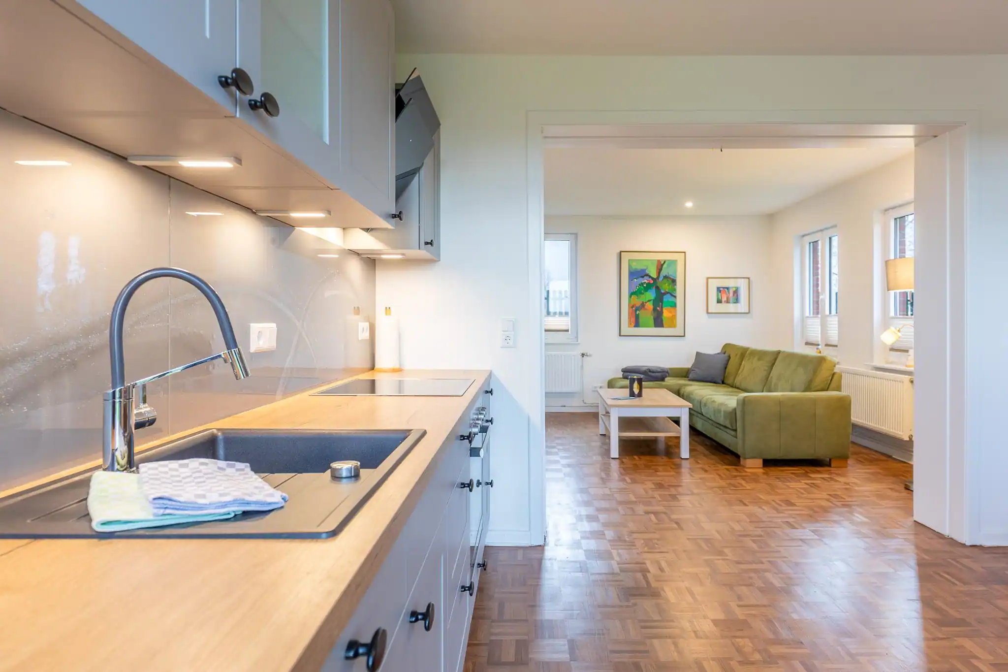Jede unserer Ferienwohnungen verfügt über eine eigene Terrasse, eine voll ausgestattete Küche mit Geschirrspüler, Backofen, Kühlschrank, Kaffeemaschine und Wasserkocher sowie ein modernes Bad mit Haartrockner. Auch WLAN und ein Parkplatz stehen dir kostenlos zur Verfügung. Für gemütliche Stunden gibt es Bücher und Spiele in jeder Wohnung.
