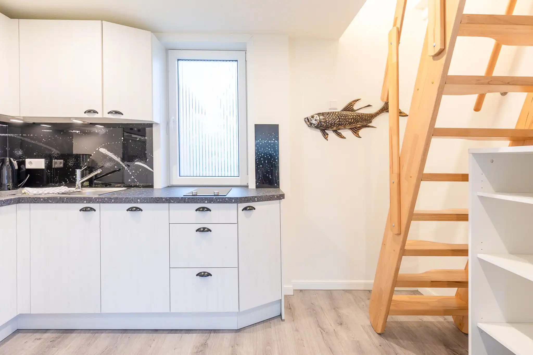 Das Besondere: Kunstwerke in den Wohnungen, Skulpturen im Hof und die hauseigene Galerie verleihen dem Ferienhaus Ku ein einzigartiges Flair.
